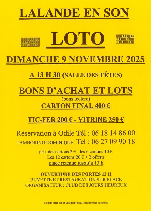 Vous êtes ici : Accueil > Loto à Lalande en Son