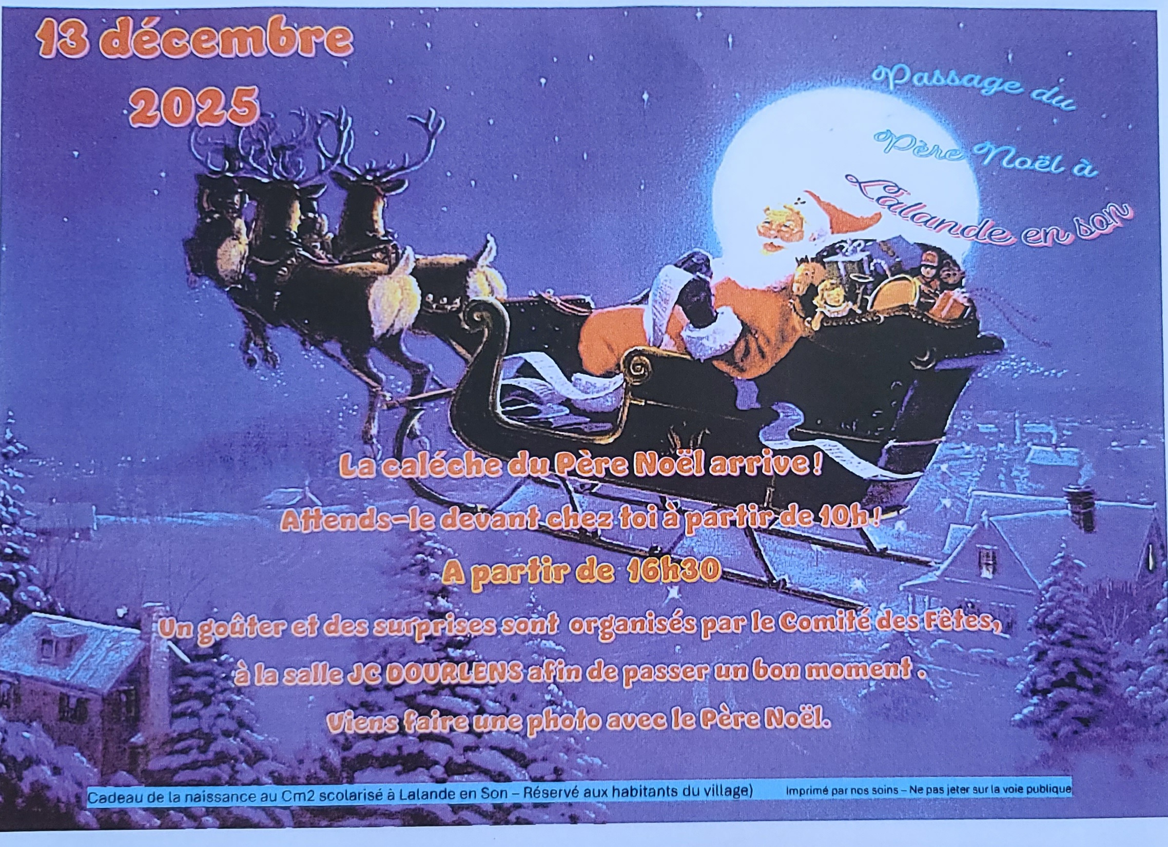 Vous êtes ici : Accueil > Passage du Père Noël à Lalande en Son